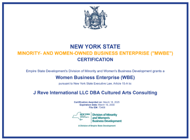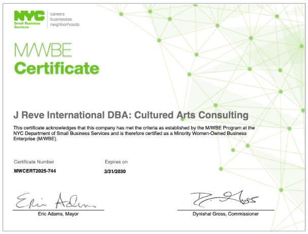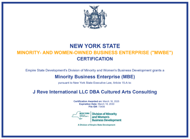 Certifications: New York State & City Certified Minority/Women-Owned Business Enterprise (M/WBE).